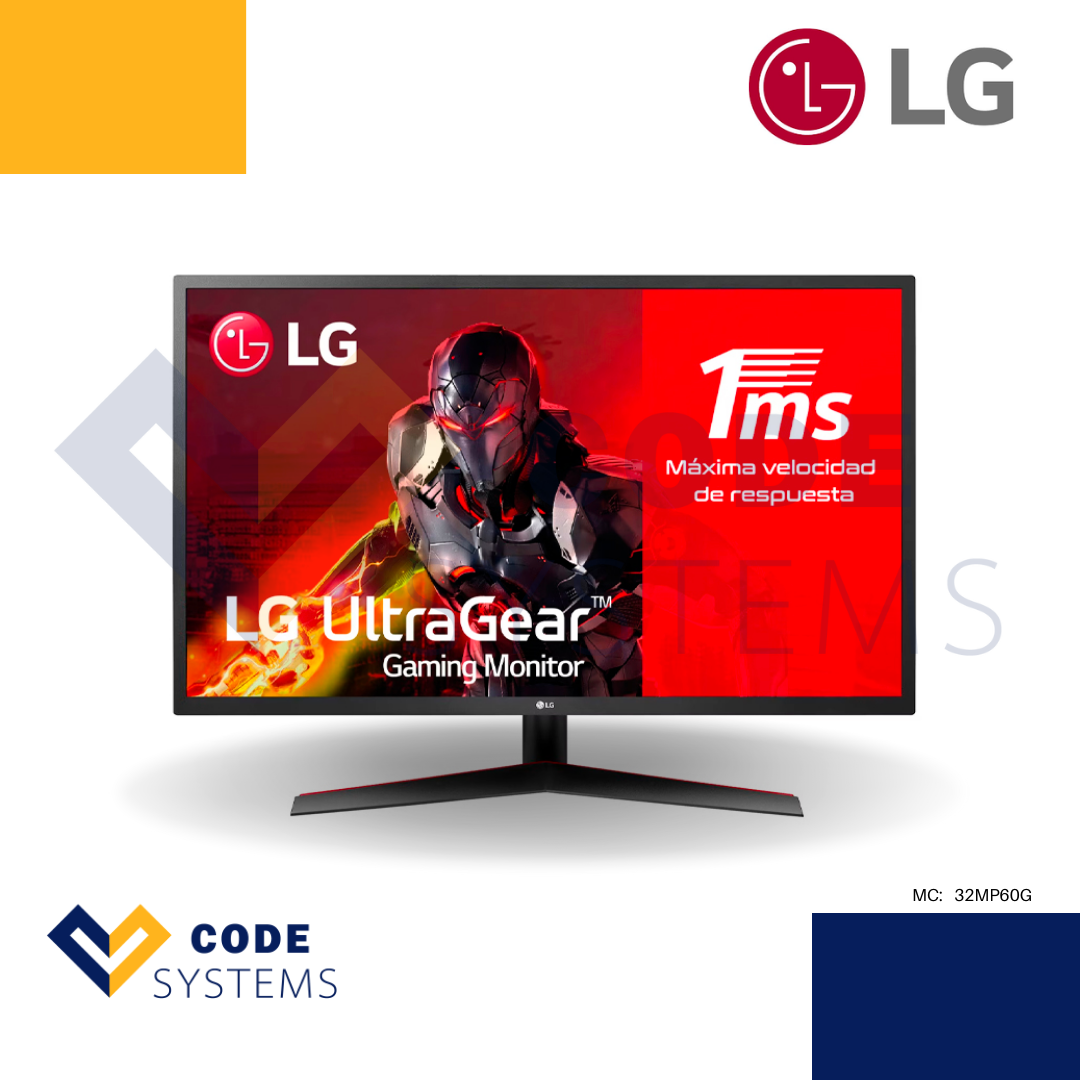 Monitor Gaming Lg 32Mp60G-B, 31.5″ Fhd Ips (1920X1080) 75Hz Hdmix1, Vgax1, Dpx1, Hp-Out X1 Relacion De Contraste: 1200:1, Relación De Aspecto: 16:9, Brillo: 250 Cd/ M², Frecuencia De Actualización De Hasta 75Hz, Tiempo De Respuesta: 5Ms (Gtg At Faster) / 1Ms Mbr, Consumo De Energía (Máx): 27W, Adaptador De Poder.