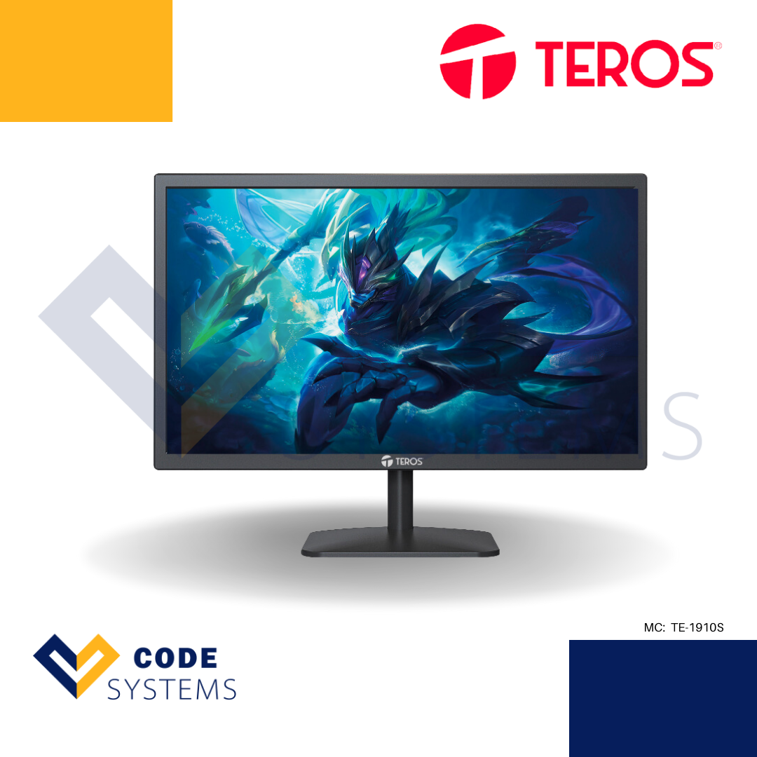 Monitor Teros Te1910S, 19″, Ips, 1680X1050, Hdmi / Vga Relación De Aspecto 16:9, Brillo 220Cd/ M2, Tiempo De Respuesta 5 Ms, Adaptador De Energia Autovoltaje.